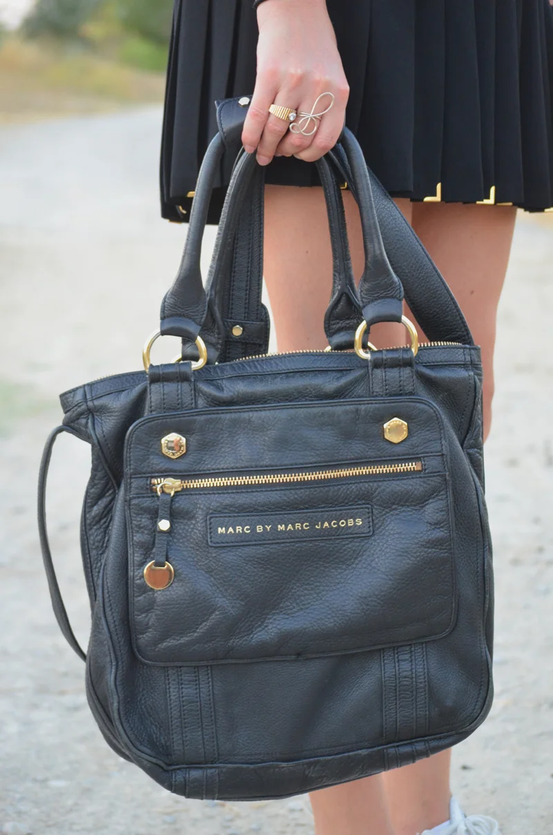 (ralph lauren sunglasses| illustrated people tank top| zara pleated skirt | white leather converse | vintage rings and arm cuff | edc watch, Marc Jacobs bag)